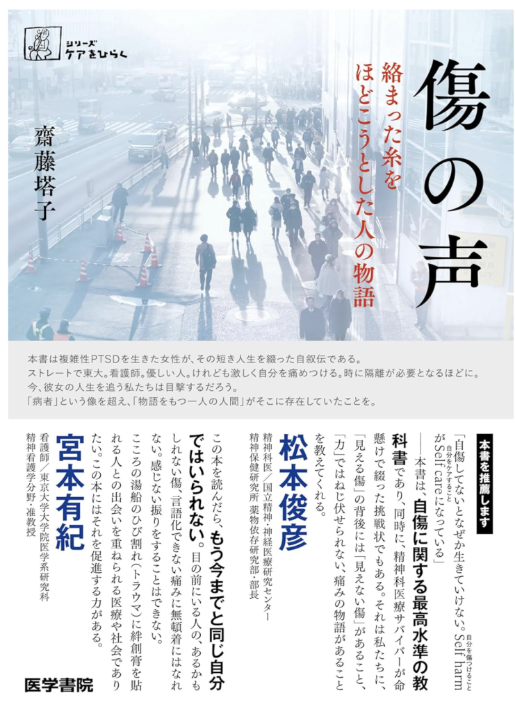 最近、医療関係の仕事をしている友人と、「お酒やタバコをやめたいのに、やめられない人」の話から派生して、人の心に関する深いテーマになりました。その流れで彼女が持っていた本、『傷の声 ― 絡まった糸をほどこうとした人の物語』(齋藤塔子 著)を借りる流れとなったのですが、引き込まれて2日で一気に読了しました。